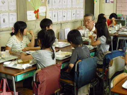また、今日は、3年生がふれあい給食で砧町の方々と一緒に給食を食べました。色々なお話をしてくださり、楽しい時間となりました。