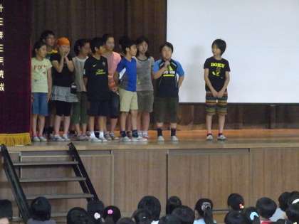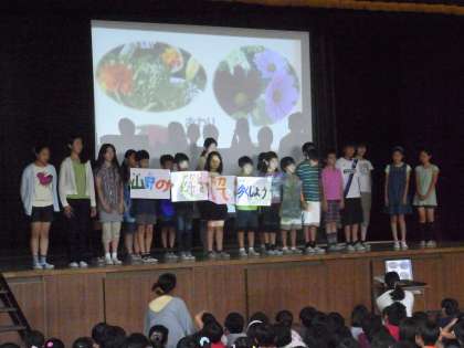 今日の児童集会は、パソコン委員会、図書委員会、栽培委員会が日ごろの活動の様子などを工夫して発表してくれました。三択問題にするところ、プロジェクターを活用するところなど、自分たちなりのアイデアで発表を作っていました。1年生から4年生までは、日ごろ自分たちの知らないところで、5,6年生の先輩たちががんばっているんだなあ、ということをきっと感じてくれたことと思います。