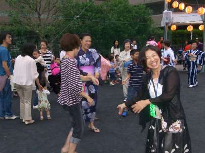 やぐらの周りでは、PTA役員の皆さんも踊りに参加していました。