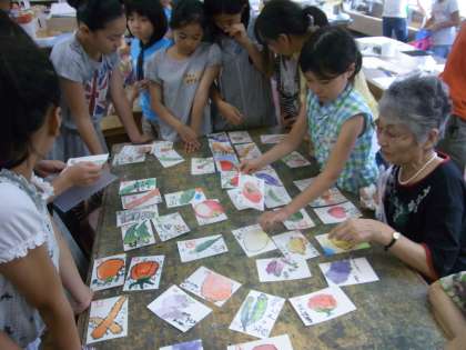夏の山のてっぺん教室三日目「絵手紙教室」