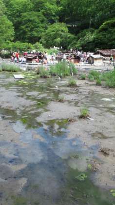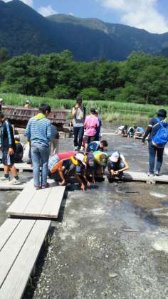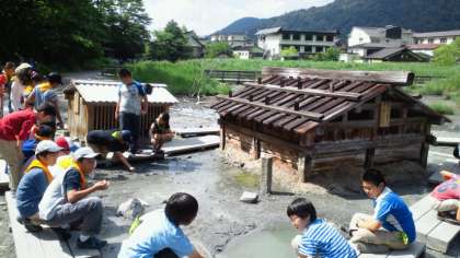 ゆで卵のにおい!湯元源泉に来ています。10円だま片手にしばし化学実験です。
