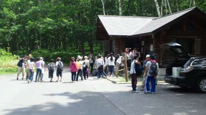 男体山もばっちり見えます。小田代展望台の貴婦人の白樺も水面に映ってます。お手洗いをすませて、さあゴールへ!