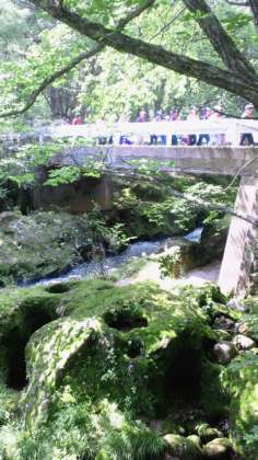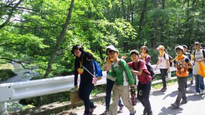 しゃくなげ橋ゴール。冷たい牛乳がおいしい!ここからはみんなで竜頭の滝へ。