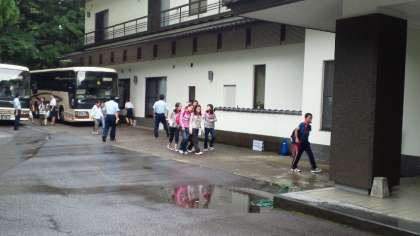 遊覧船を下りてバスに乗ったら、おおつぶの雨が。ラッキーですね。宿に無事到着。予定より早く帰って来られました。
