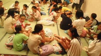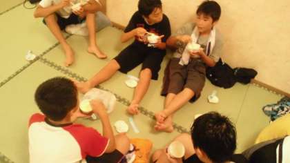 お風呂あがりのアイスクリームタイム。さあ、おいしく食べて今夜はぐっすり寝ましょうね。