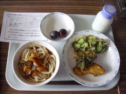 今日は、6年生の水泳記録会ということで、消化の良いうどんと身体を動かす時のエネルギーとなる天ぷらを取り入れました。よく噛んで食べて、記録会では、今までの練習の成果を存分に発揮してください。