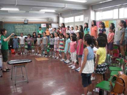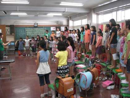 そこに、我が山野小合唱団が加わり、歓迎する歌を披露したり、