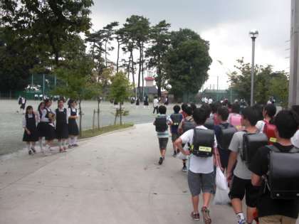 今日は6年生は砧中学校訪問の日でした。暑い中、砧中学校まで歩いて行くのはとってもしんどいでしたが、中学生たちは毎日こうしているのだと思うと、弱音は吐けません。