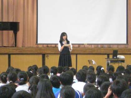 中学校につくと、卒業生たちが待っていてくれました。前半戦は体育館で、委員会紹介や、部活紹介、そして質疑応答がありました。「給食はおかわりできますか?」というかわいい質問に、「もちろんできます!」と優しく答えてくれる中学生が、とっても爽やかに見えました。