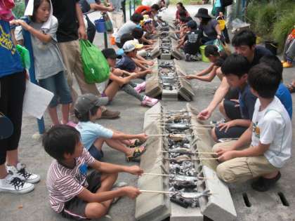 1.釣った魚を、自分の手でさばきます。(写真上)