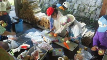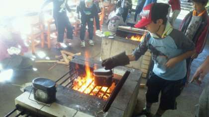 今日のメインイベントとも言える飯盒すいさんです。はたして美味しいカレーができるかなあ。みんなの力の合わせどころです。