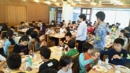 中野ビレジでいただく最後のお食事です。パンです。感謝して、いただきます!