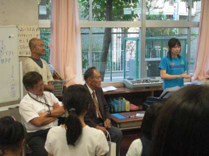 子どもたちの歌声に、体でリズムをとって聴いてくださっていました。