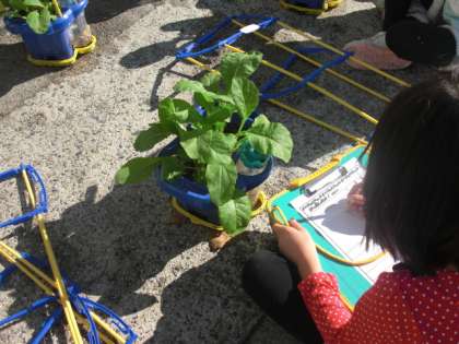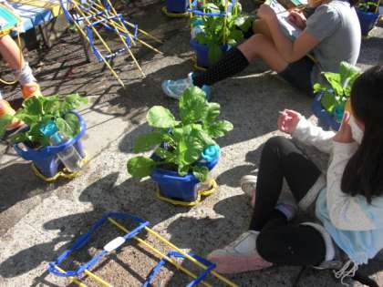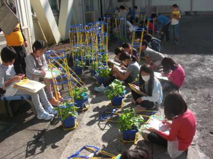 2年生は、職員室前のプランターに秋野菜を植えて育てています。