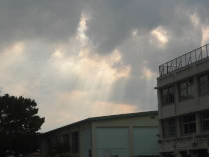 雲の切れ間から洩れる太陽光が放射状に降り注ぐ現象を