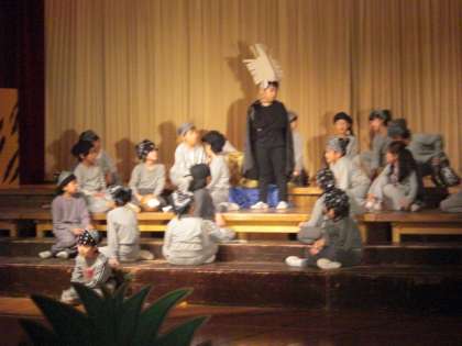 劇団四季ばりの熱演と装飾です。