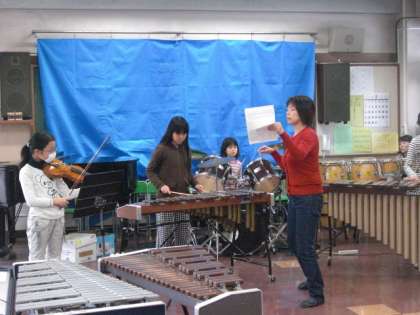 今日も6年生「THE MUSIC 山野 twelve」の指導(写真:上)に保護者ボランティアの