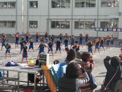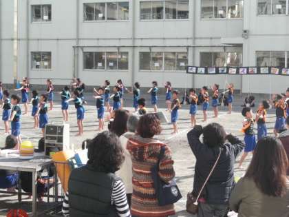第1日目、校庭での演目のスタートは、3年生民舞からです。
