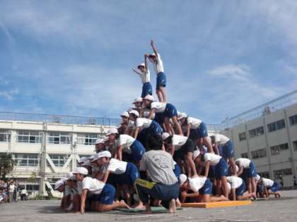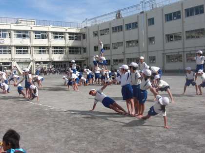 後半の”組体操”のシンクロと逞しさと4年生が心をひとつに演じます。