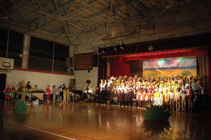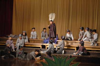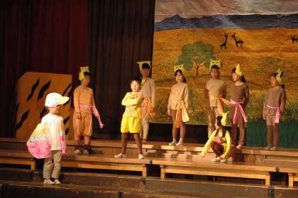 劇団四季で誰もが知っているライオンキングに挑戦したのは2年生です。これが、びっきり!すごいすごい。本物に負けないくらい(少なくとも、私はそう思いました)の演技力です。最後の全員合唱は、感動モノです。
