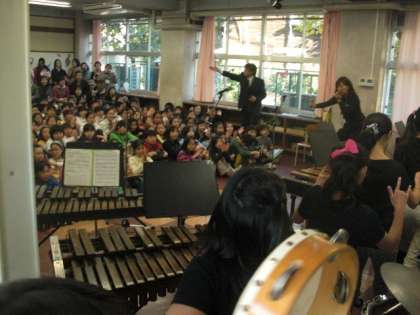 大勢の参観者を前に、緊張する子どもたち。