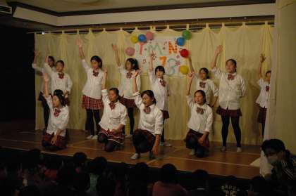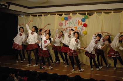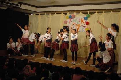 ランチルームではダンスや小劇が行われています。「YMN 13」は6年生女子13人のグループです。ダンスの練習は、結構厳しかったようです。その練習を乗り越えて、笑顔で頑張っています!