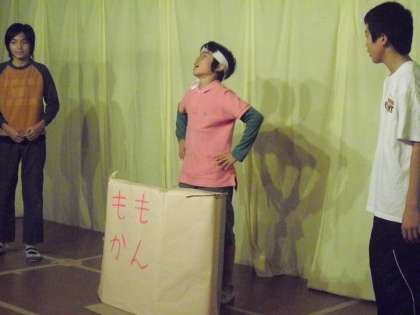 台本を読んだ時はどうなるんだろうと思いましたが、こうなるとは。子どもたちのアイデアに感心しきりです。桃太郎がこうなるとは、だれが予想できたでしょう!OMOSIROI!