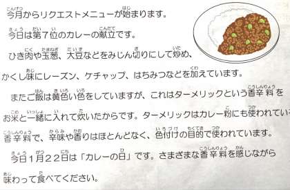 リクエスト給食の第7位ということですが、他のカレーがもっと上位に入っているのでしょうか。