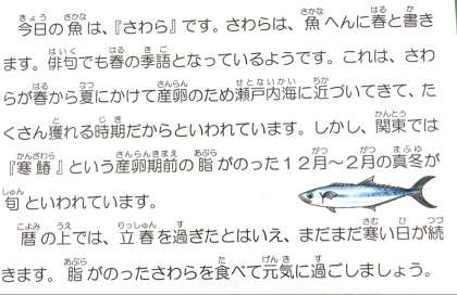 さわらは、魚辺に春と書くので、春の魚のイメージですが、いちばん美味しいのは、脂がのった冬とのことです。さわら好きの「さわらー」である私は、とても満足でした。