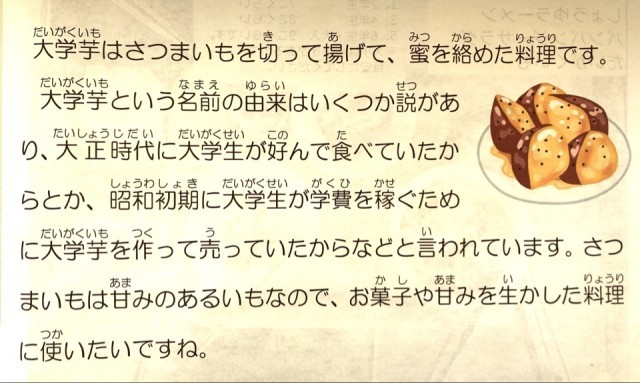前回のラーメンは10月1日でした。10月の献立表を見たら、バンバンジーサラダは同じですが、大学芋ではなくてキャラメルポテトでしたが、大学芋もキャラメルポテトも、キャラは同じですきゃら。