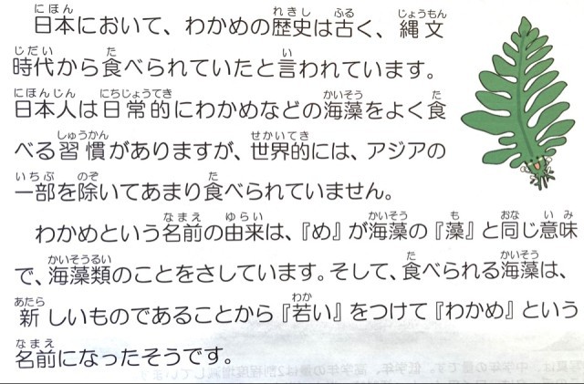 わかめご飯は、噛めば噛むほどわかめの味が出ます。わかめは食物繊維やミネラルが豊富なので、食べると、見た目がちょっと若めになるかも知れません。でも、残念ながら髪の毛への効果は無いそうです。