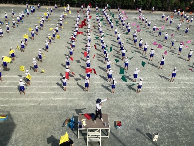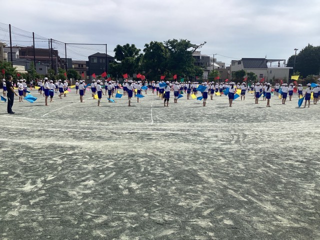 組体操の練習に続いて、今週からフラッグ練習が始まりました。