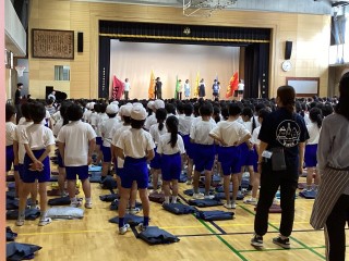 音楽集会では、運動会の歌を全員で歌いました。迫力ある歌声が響き渡りました。