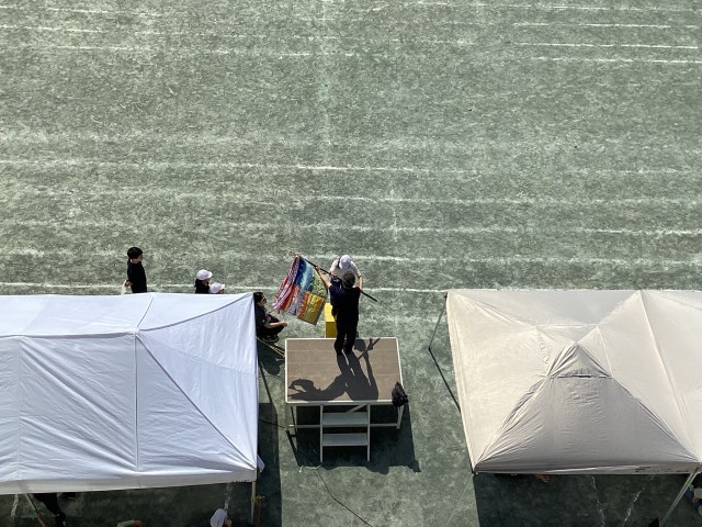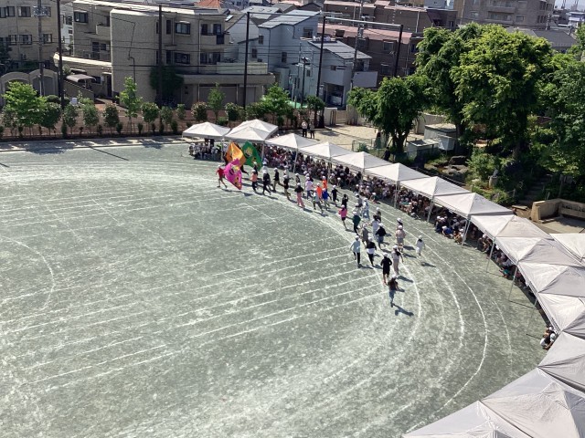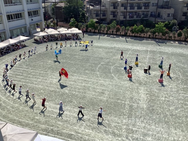 スポーツフェスタの全体練習第2回目でした。閉会式練習では、代表委員による得点発表や児童代表の言葉、優勝旗の授与の練習と集会委員による整理運動を行いました。応援演舞の練習では、全校のエールの練習をしまいた。始めは小さかった声も、応援団の大きなかけ声に合わせて、最後に1000人分の声が響きました。応援団が全員の前を走るウェーブも見応え十分です。