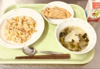 今日は、五目チャーハン、ジャンボぎょうざ、ワンタンスープ、牛乳です。リクエスト給...