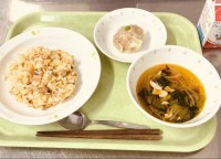 今日は、五目チャーハン、シュウマイ、中華風野菜スープ、牛乳です。シュウマイは、「...