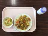 今日は中華です。チャーハン、白菜と春雨のスープ、愛玉子ゼリー、牛乳。愛玉子(オー...