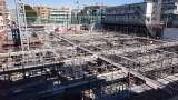 鉄筋が上へ上へと組まれています。給食門のあった周辺へ向けて基礎が作り進められてい...