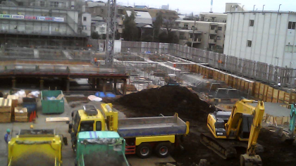 工事の定例の打ち合わせ会で、現場事務所から写真を撮りました。大勢の方々が手際よく...
