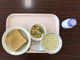 今日は、ハニートースト、クリームシチュー、ツナサラダ、牛乳です。洋食メニューです...
