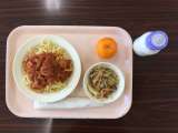 今日は、スパゲッティペスカトーレ、パリパリごぼうサラダ、みかん、牛乳です。ペスカ...