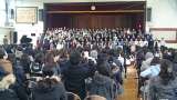 体育館で、学年全体で、呼びかけや一人ひとりの決意や夢を発表し、心を合わせての合唱...
