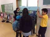 6年1組の皆さんが、ミュージックフェスタで使う体育館掲示用の大きな歌詞カードを作...