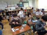 1年生が「風車」を作っていました。先生の説明を聞いて、自分でも設計図で確かめなが...