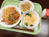 >今日は、チンジャオロース焼きそば、白菜の中華サラダ、豆腐と玉子のスープ、牛乳で...