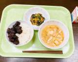 >今日は、ごはん、鯨のコロコロ揚げ、野菜の磯あえ、じゃがいものみそ汁、牛乳です。...