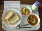 今日は、二食サンド、牛乳、白いんげんの田舎風スープ、ごぼうチップサラダです。 メ...