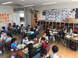 1年生の教室に給食補教に行きました。食事中の一コマです。