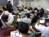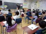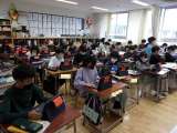 5年生の日本語の授業の様子です。 日本の文化について各自新聞にまとめていました...