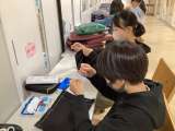 6年生の家庭科の授業です。 ナップザックを作っているところです。縫う前に、生地...